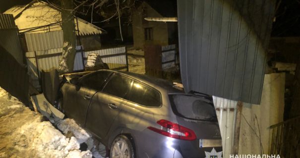 Жительница Хмельницкого за рулем Peugeot не справилась с управлением на повороте – машина выехала на обочину и остановилась на территории частного домохозяйства.
