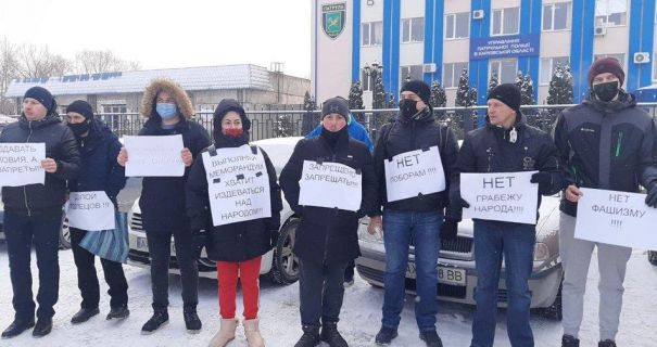 "Заявили, что владельцев авто на еврономерах будут штрафовать минимум на 8,5 тысячи гривен, при повторном нарушении - на 17 тысяч гривен. Люди собрались, чтобы выразить по этому поводу свое недовольство и отстоять свои права", - сказал журналистам один из участников акции.