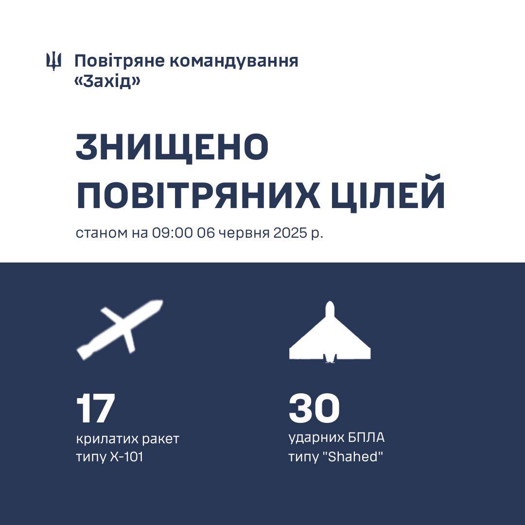 В ночь на 6 июня российские оккупационные войска нанесли комбинированный ракетно-авиационный удар по западному региону Украины