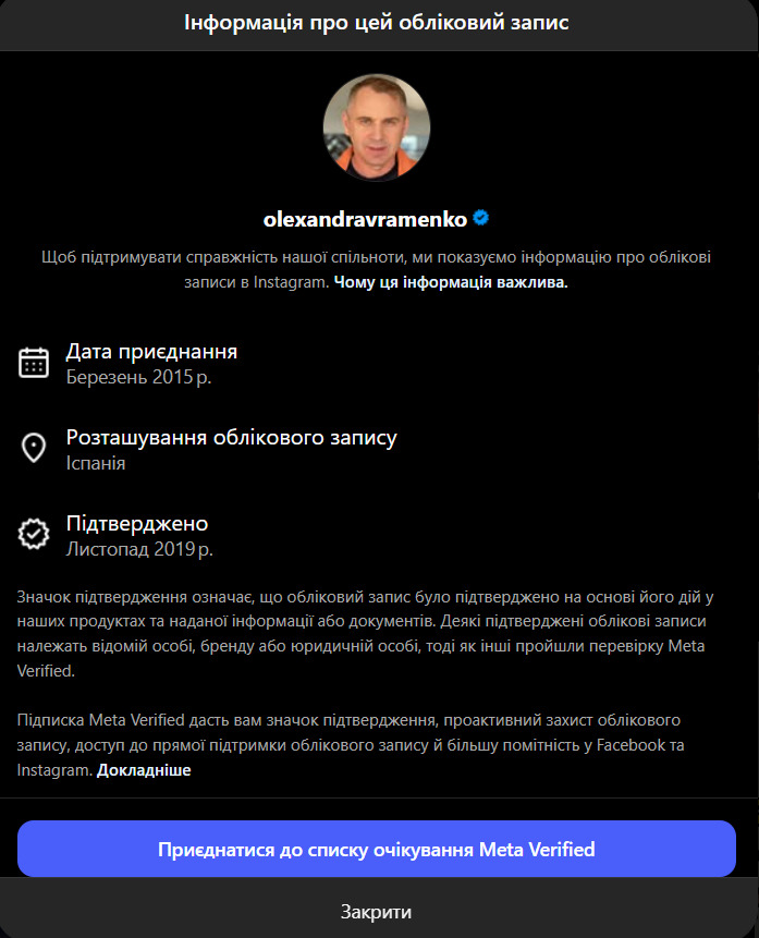 Самое интересное – в профиле Instagram указано, что Авраменко сейчас находится в Испании.