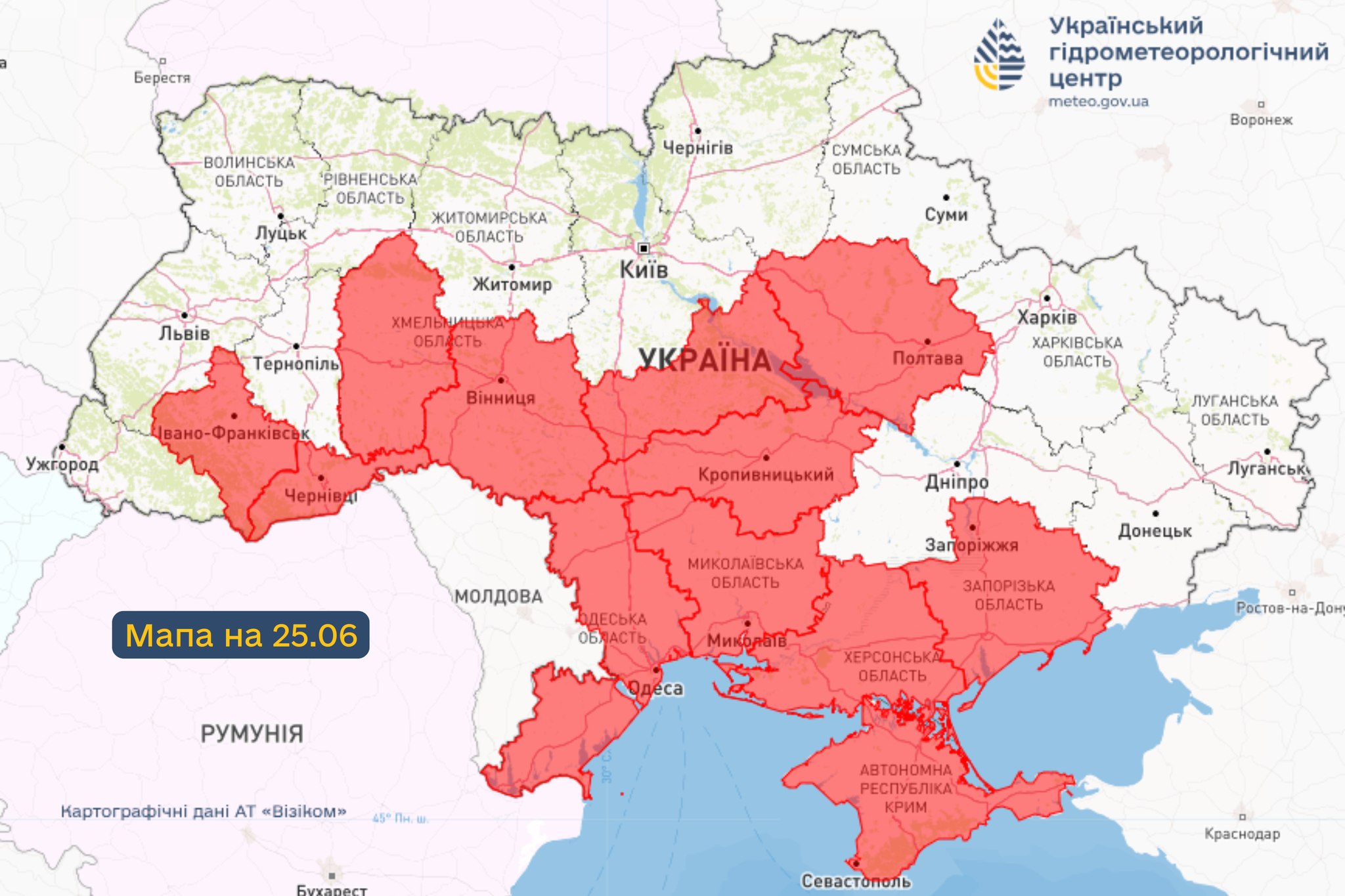 В частности, самый высокий – пятый класс пожарной опасности – ожидается в южной части Украины, большинстве центральных областей, а также в Хмельницкой, Черновицкой и Ивано-Франковской областях.