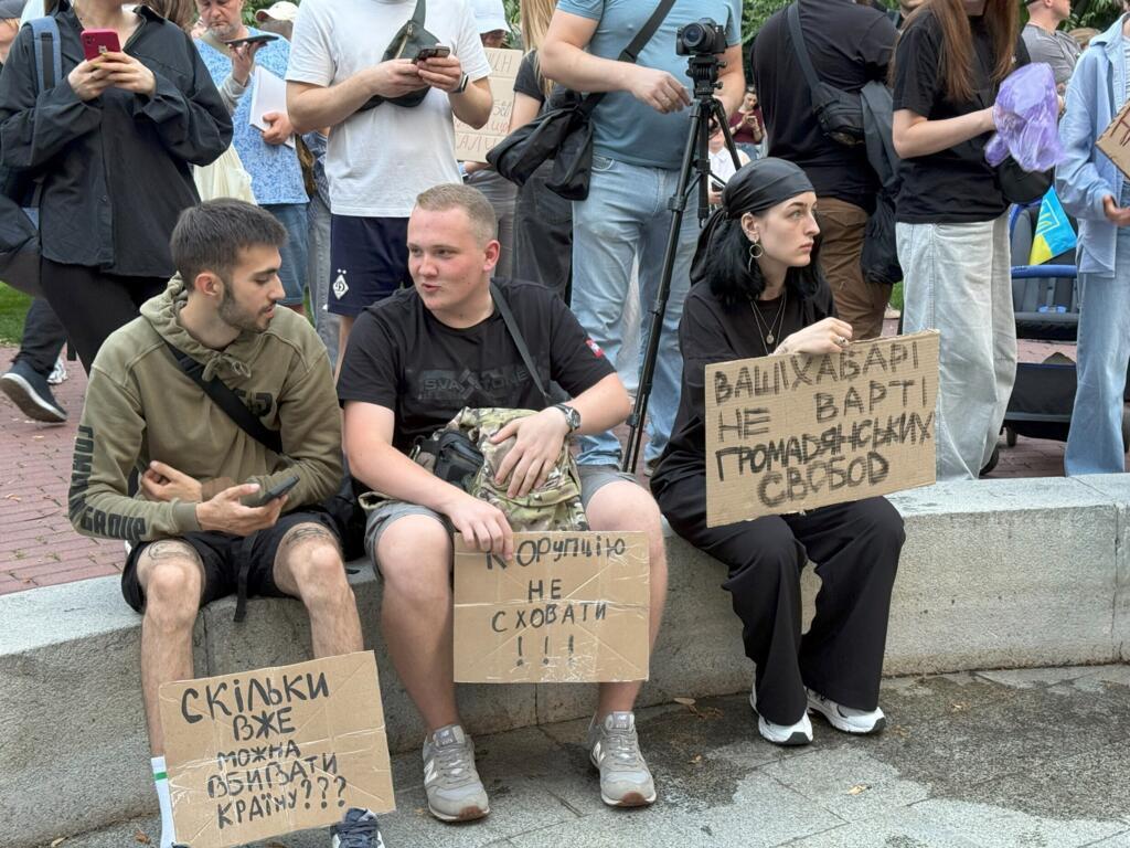 Среди звучавших лозунгов: "Вето на закон", "Руки прочь от НАБУ", "Коррупция — смерть будущего", "Независимость НАБУ и САП".