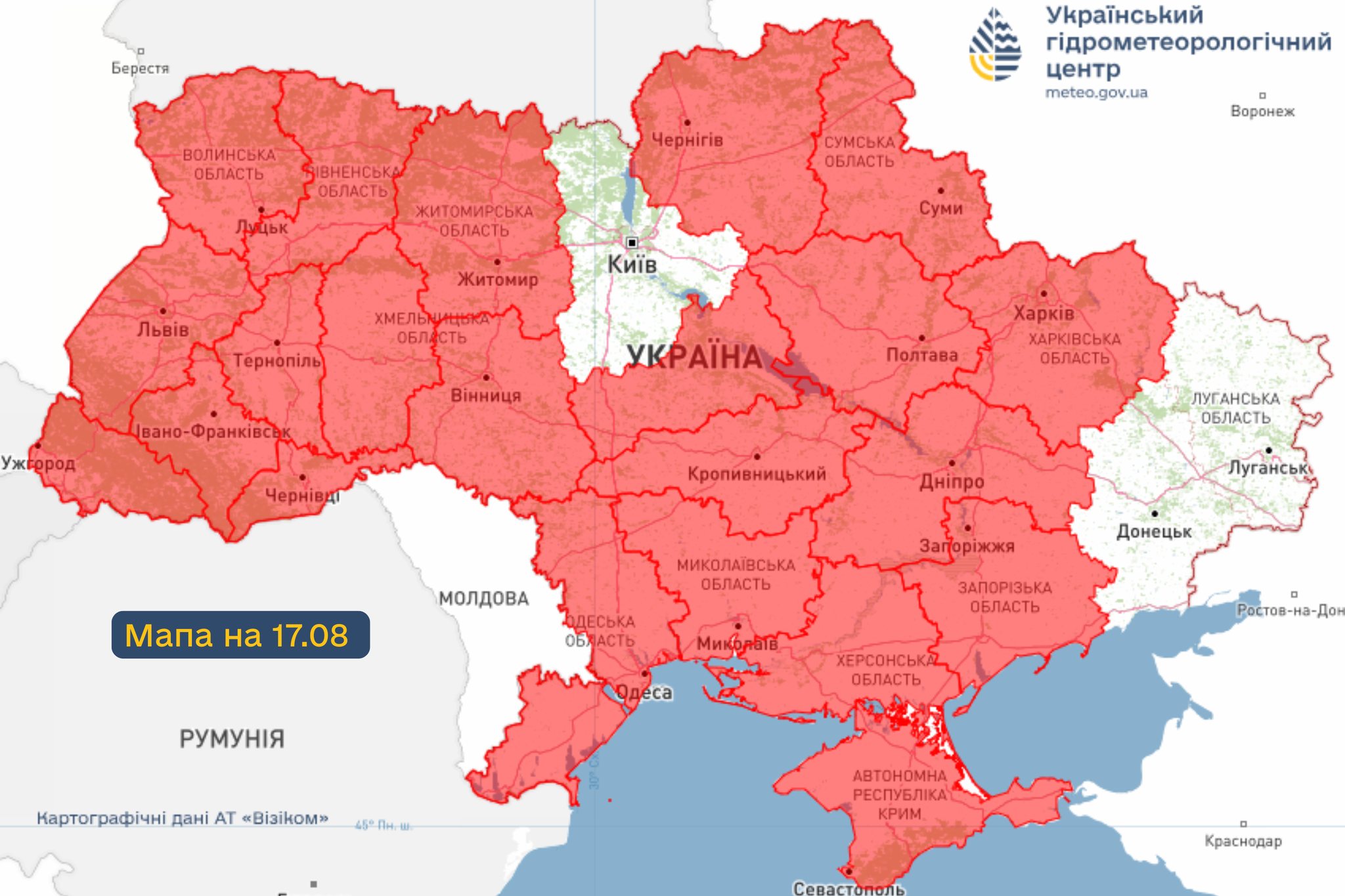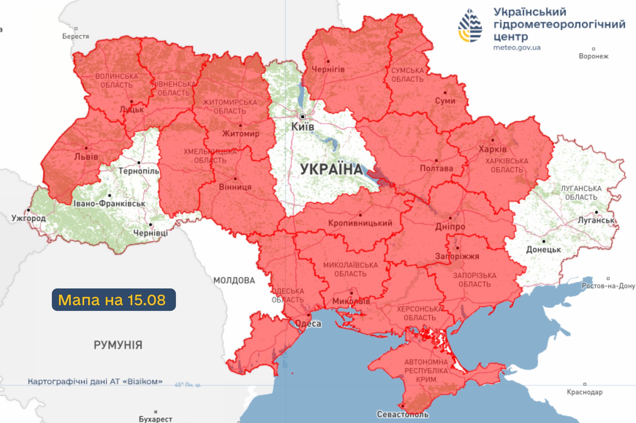Во многих регионах Украины на период с 15 по 17 августа объявлен чрезвычайный уровень риска возникновения пожаров