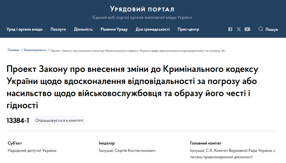 Об этом идет речь в проекте Закона о внесении изменения в Уголовный кодекс Украины Правительственного портала, передает RegioNews.