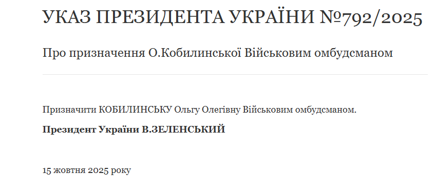 Президент Владимир Зеленский подписал указ о назначении Ольги Кобылинской на должность военного омбудсмана