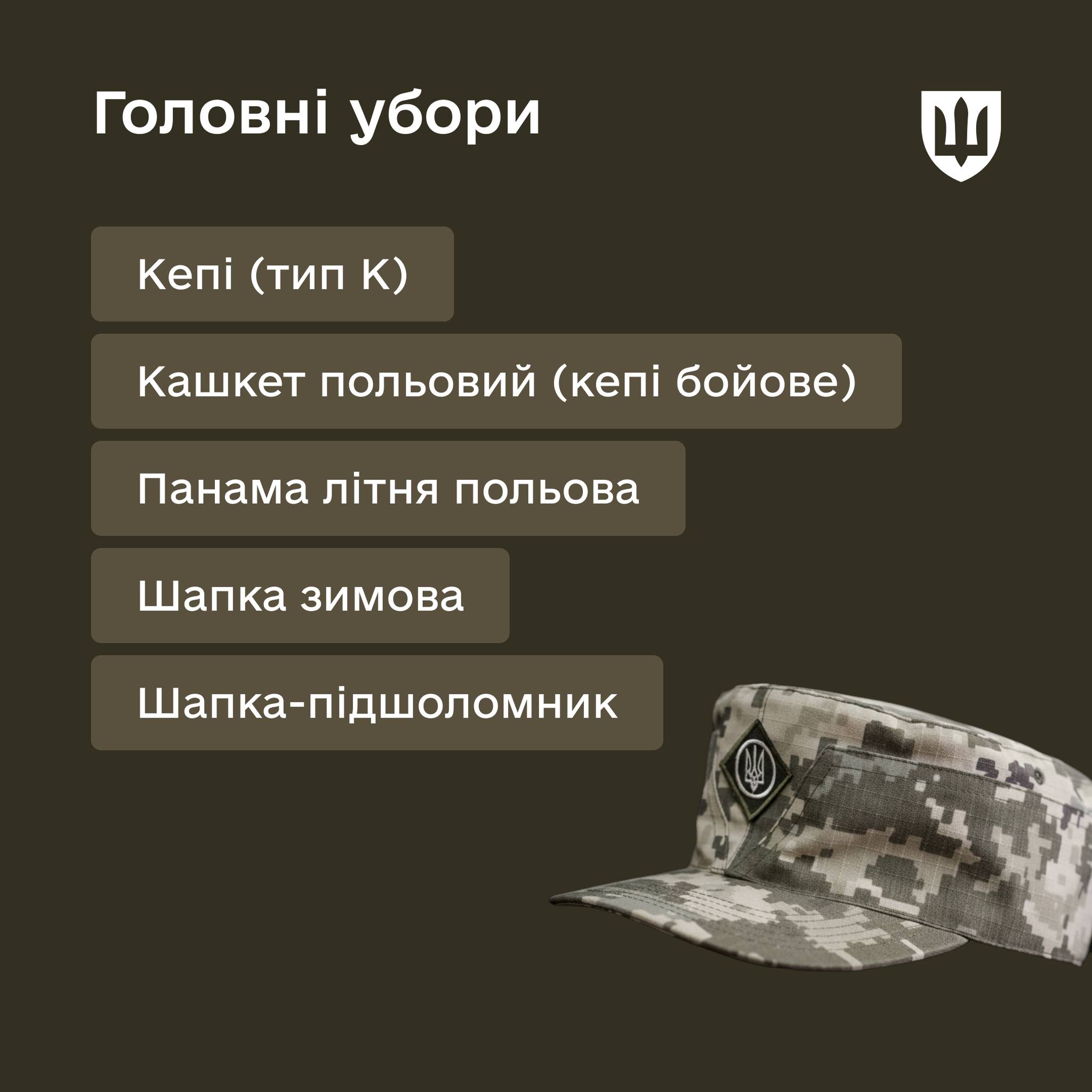 - головные уборы;