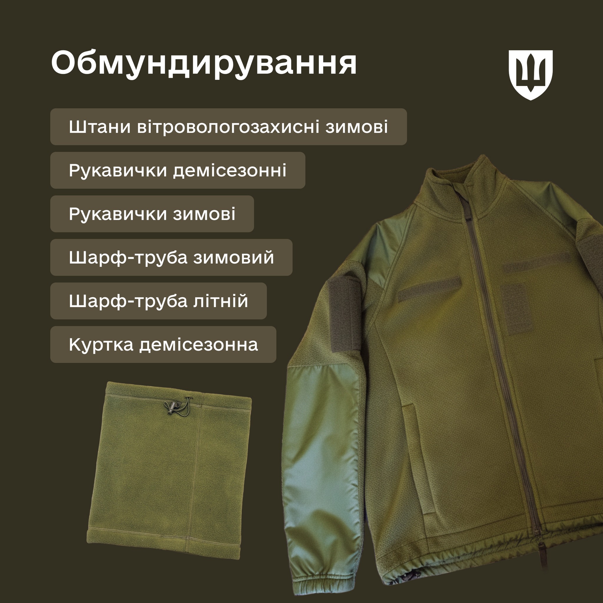 Речь идет о полном наборе – от летней панамы, полевого костюма, термобелья и трекинговых носков до зимних курток, утепленных штанов, тактических рукавиц, спального мешка, фляги, шлема и бронежилета.