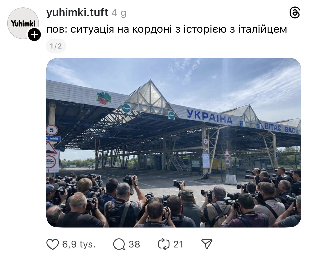 История мгновенно стала вирусной. Украинцы за считанные часы превратили Рокко в героя мемов и ждали информации о пересечении границы итальянцем.