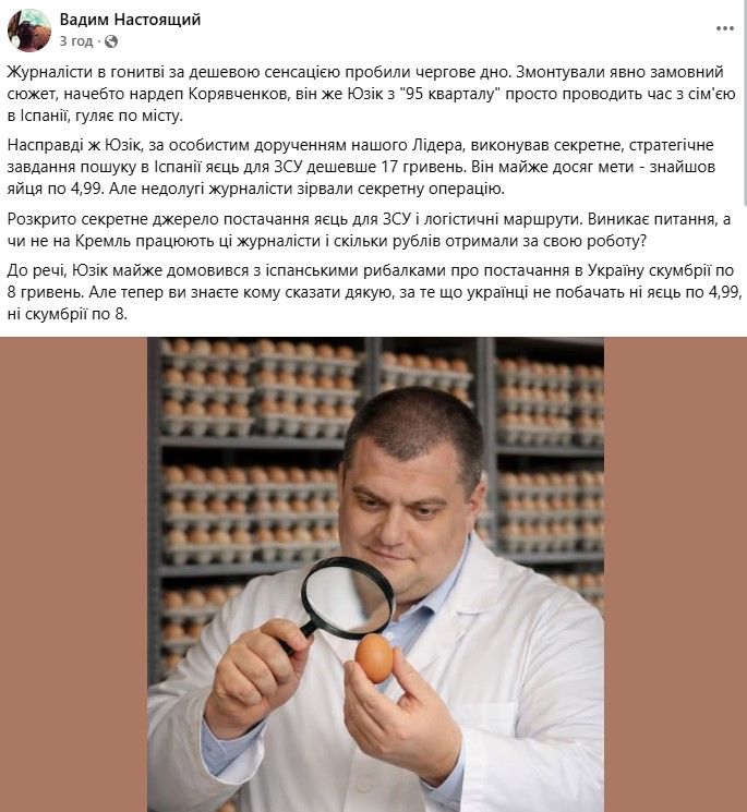 Скандал о закупке яиц по 17 гривен за штуку снова в тренде благодаря Юрию Корявченкову. Пользователи соцсетей говорят, что он наглядно показал, где сейчас "те же закупщики".