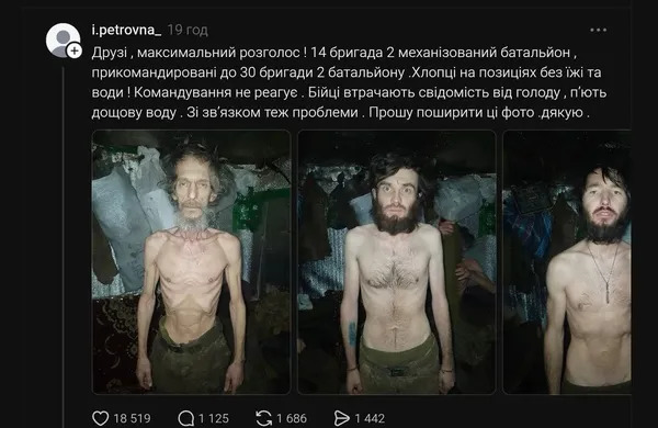 В сети распространили фото якобы бойцов 14-й отдельной механизированной бригады, на которых военные выглядят истощенными