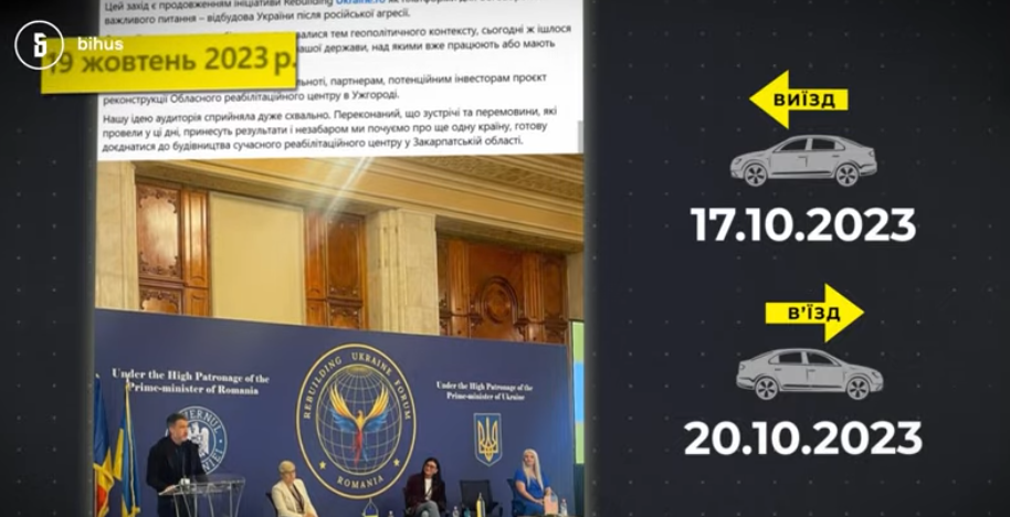 По данным Bihus.Info, с начала полномасштабного вторжения Мирослав Билецкий и его экс-жена выезжали за границу по меньшей мере 8 раз, 7 из которых на автомобиле, записанном на женщину.