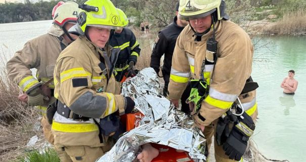 Оказалось, что во время развлечений в одном из карьеров 12-летний парень упал в воду и получил травмы. Чрезвычайники с помощью жестких ношей транспортировали его в карету "скорой".