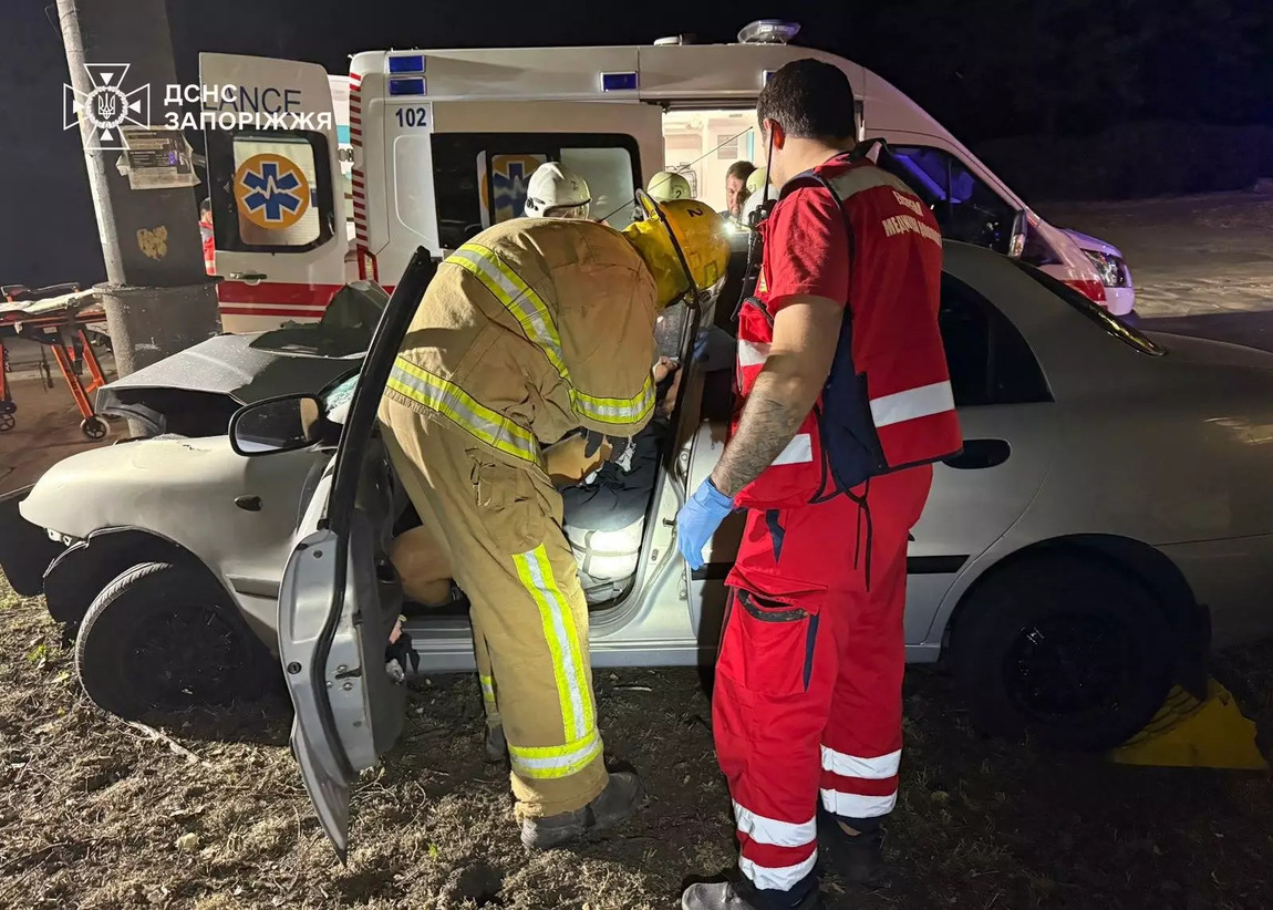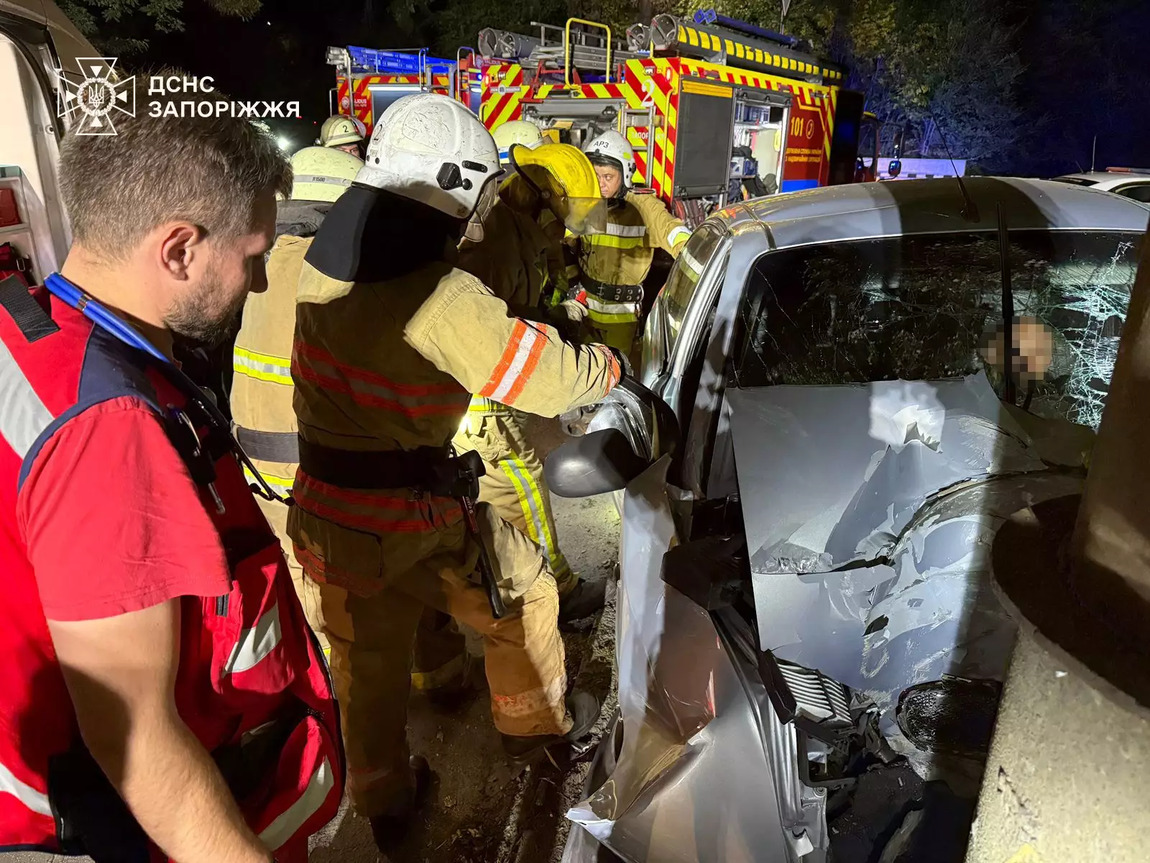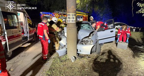 В Запорожье легковушка врезалась в электроопору: водителя зажало в салоне