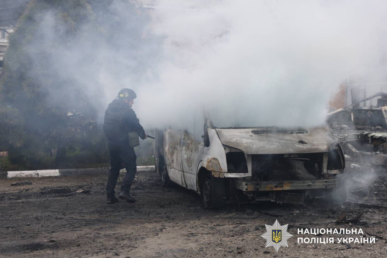 Еще три удара военные рф нанесли по открытой местности. В результате ранения получили работник патрульной полиции, сотрудник ГСЧС и гражданский. Также получили повреждения несколько транспортных средств. На местах работали парамедики полиции, оказывая первую помощь пострадавшим.