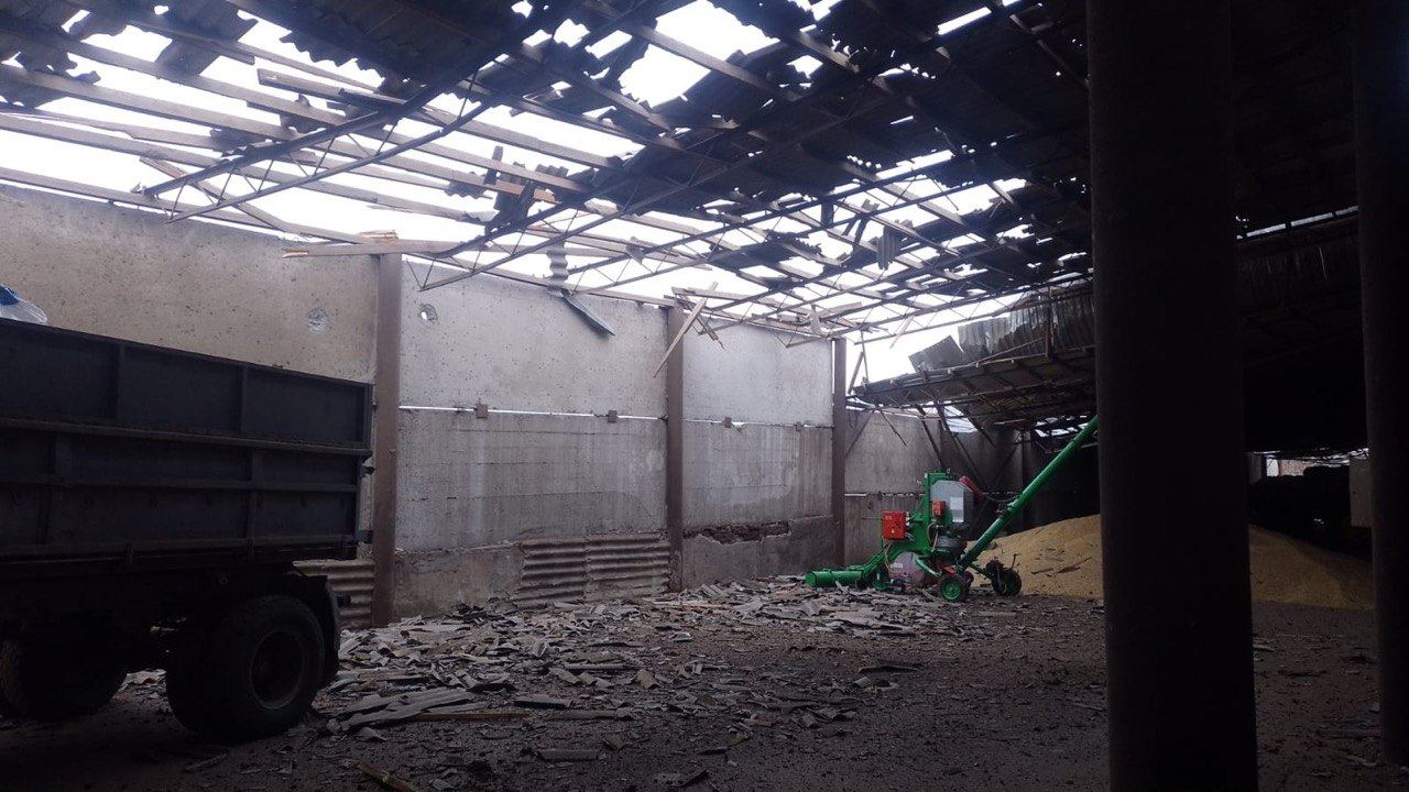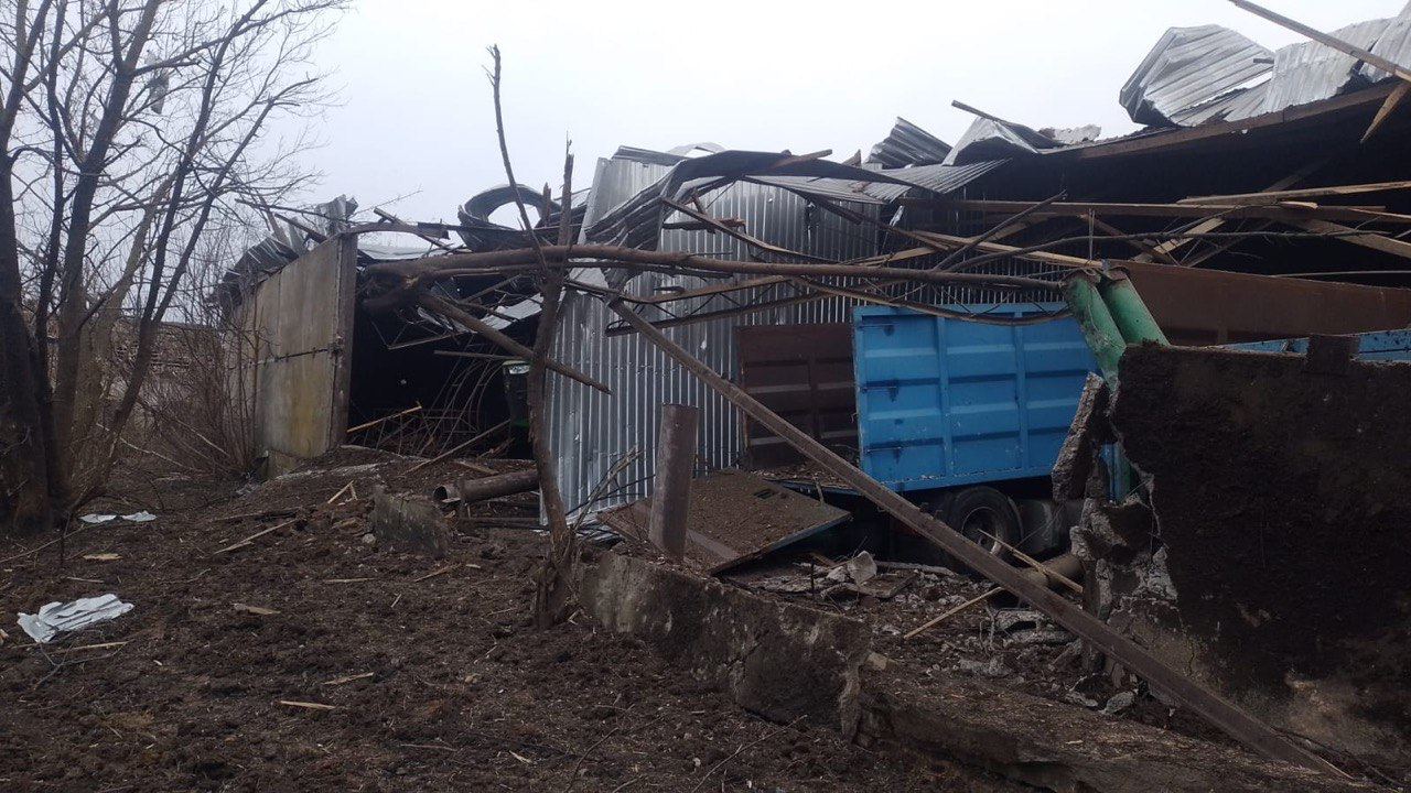 Внаслідок російських ударів був знищений ангар. Також пошкоджена сільськогосподарська техніка: комбайн, оприскувач, чотири вантажні та один легковик.