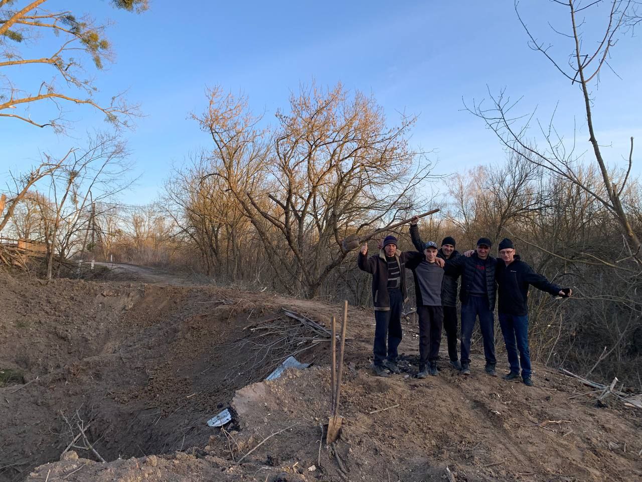 Староста Сергій Анікін і жителі села Рижівка будують міст. Фото: з особистого архіву