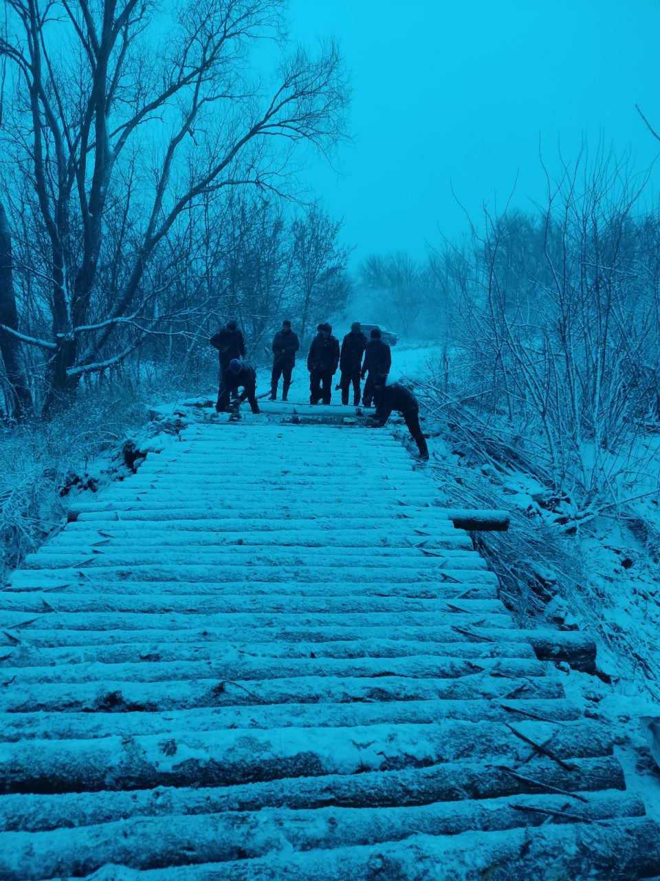 Місцевий староста Сергій Анікін запропонував побудувати міст через струмок. Робота була небезпечною, бо по людях відразу відкривався артилерійський і мінометний вогонь. Староста разом з кількома місцевими жителями працювали протягом двох тижнів по дві години на день так як далі починався обстріл. В результаті міст вдалося побудувати, що дозволило відновити сполучення села з районним центром.