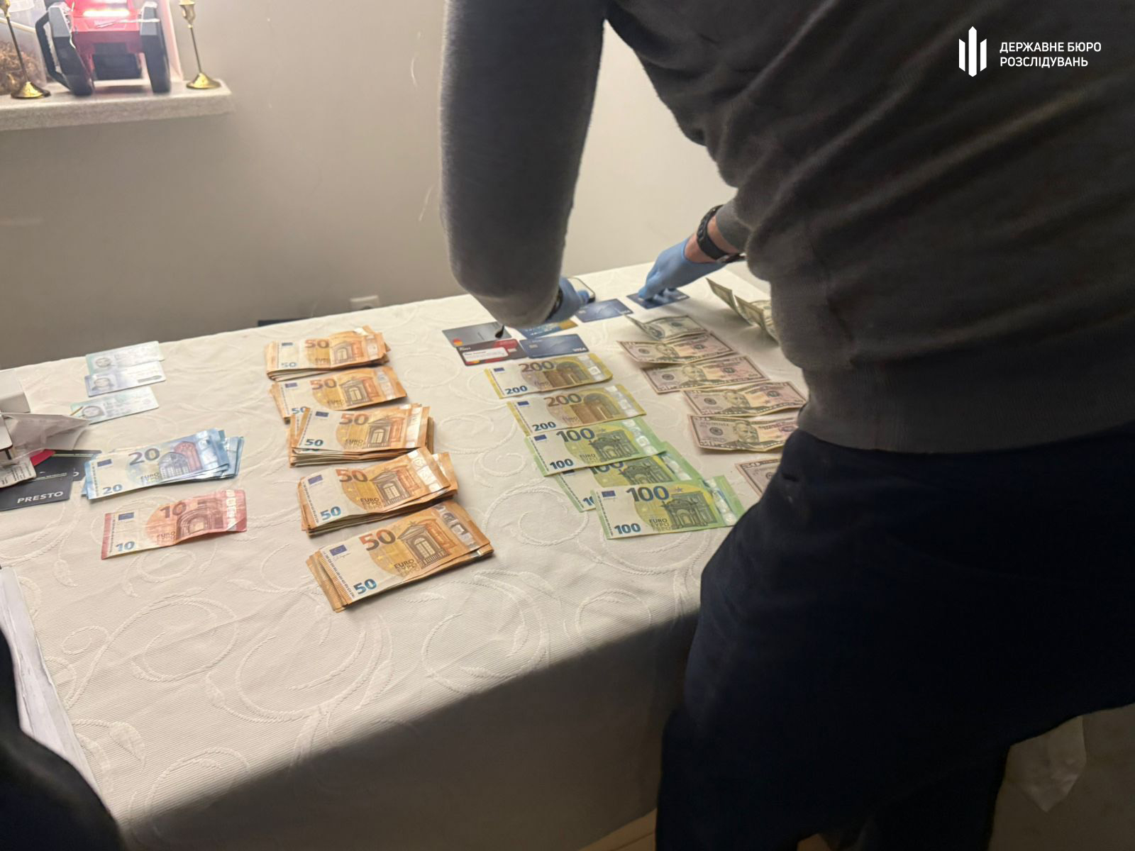 Правоохоронці також провели обшуки за місцем проживання фігуранта та на митниці. Під час обшуків вилучили майже пів мільйона гривень у різній іноземній валюті, картки іноземних банків та мобільні телефони.