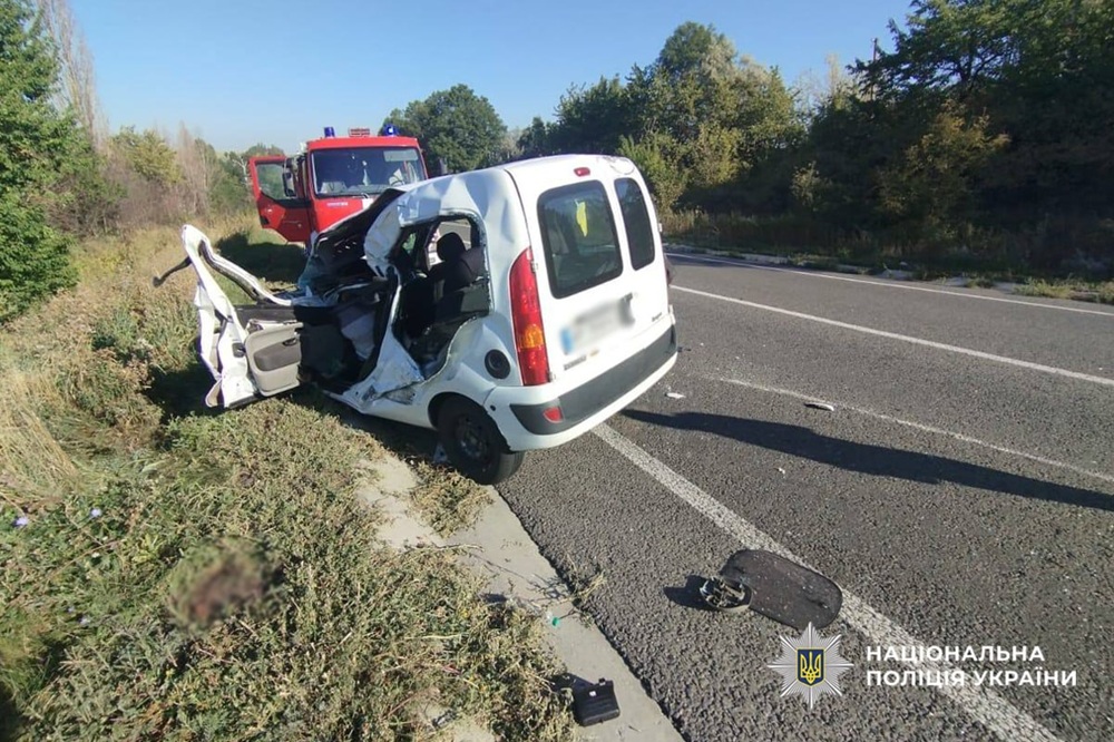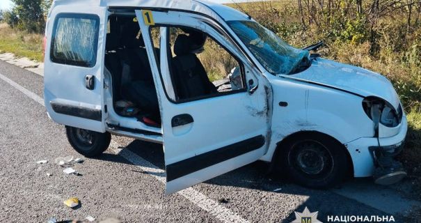 Попередньо встановлено, що 58-річний водій "Renault Kangoo" виїхав на смугу зустрічного руху. Там він зіткнувся з вантажним автомобілем "Scania", за кермом якого був 22-річний водій. Після удару вантажівка перекинулася, а з неї на дорогу висипалися колоди деревини, що ускладнило рух транспорту.
