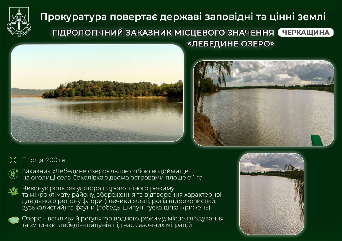 Прокуратура оскаржує передачу в оренду території гідрологічного заказника місцевого значення "Лебедине озеро" в Жашківському районі