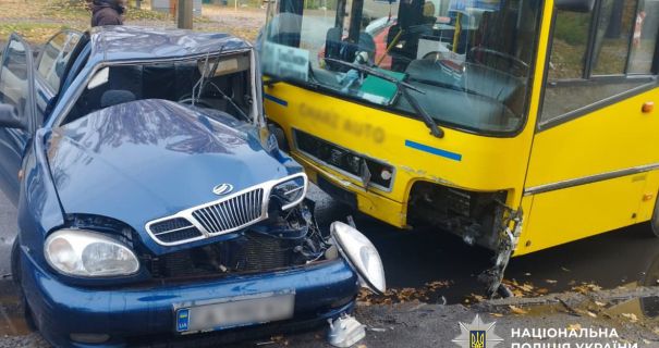 Зіткнулися маршрутний автобус Volvo та легковик Daewoo Lanos. Попередньо встановлено, що 70-річний водій легковика не надав переваги в русі й врізався в маршрутку під керуванням 52-річного водія.