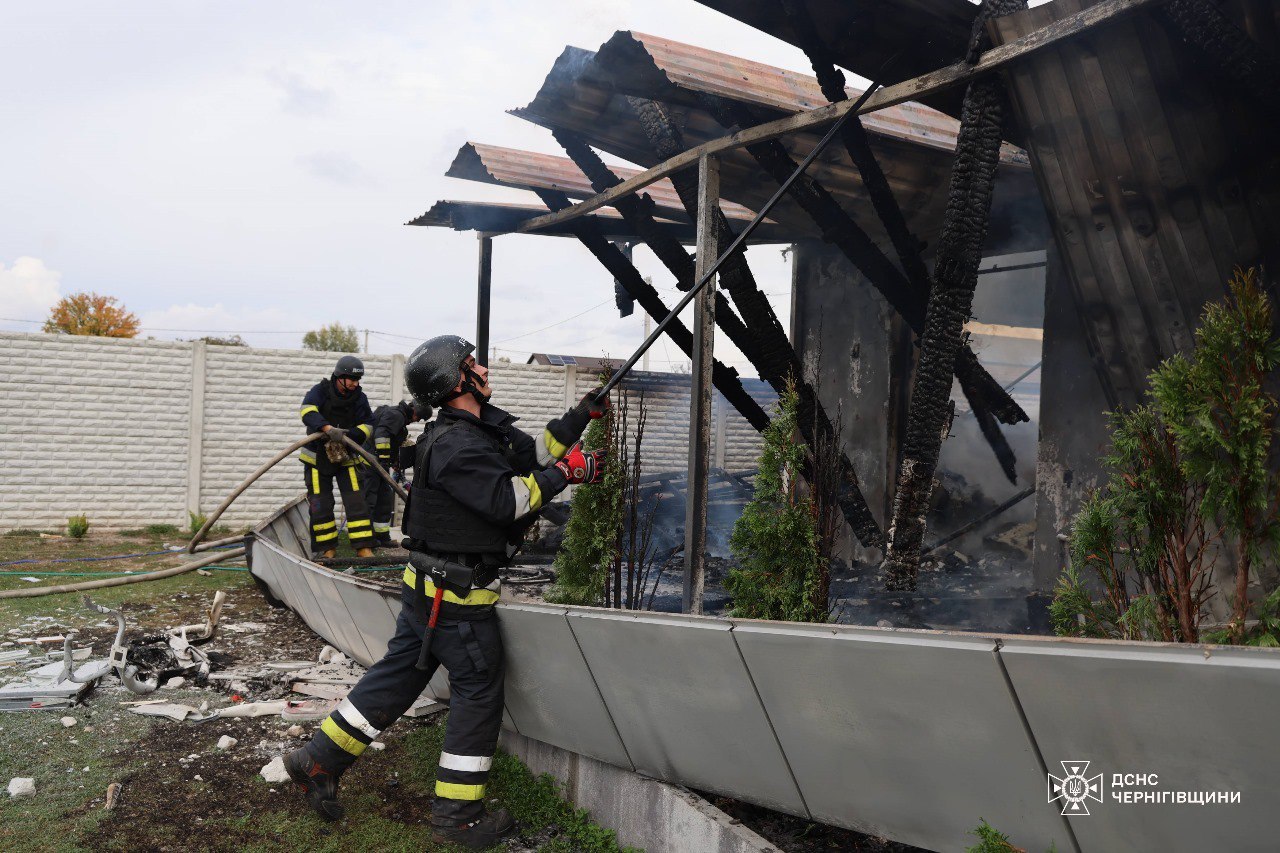 Унаслідок дронових атак у Чернігові сталася пожежа в житловому будинку на околиці міста, пошкоджено об’єкт енергомережі. Один чоловік зазнав незначних травм, від госпіталізації відмовився.