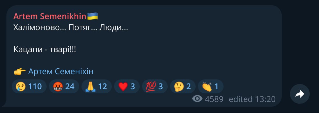 "Халімоново… Потяг… Люди…", – написав він у Телеграмі.