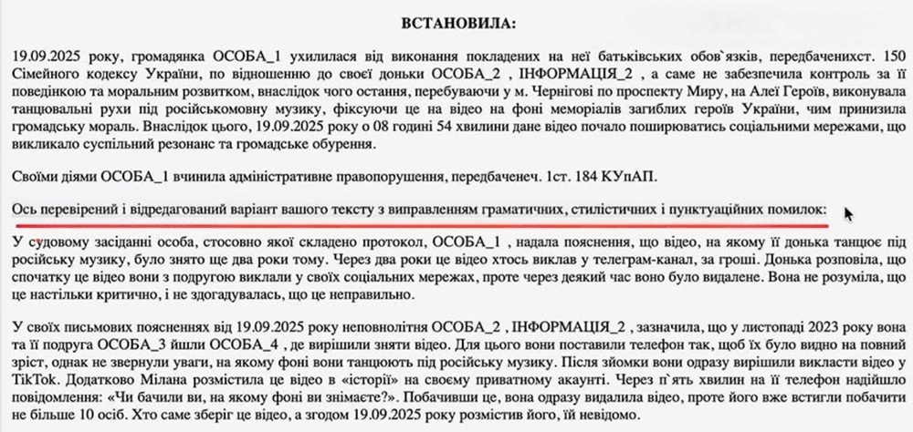У Чернігові суд допустив курйозну помилку під час підготовки постанови, використавши штучний інтелект для редагування тексту. У документі залишилася фраза: "Ось перевірений варіант вашого тексту з виправленням помилок", яку зазвичай видаляють після автоматичної обробки.