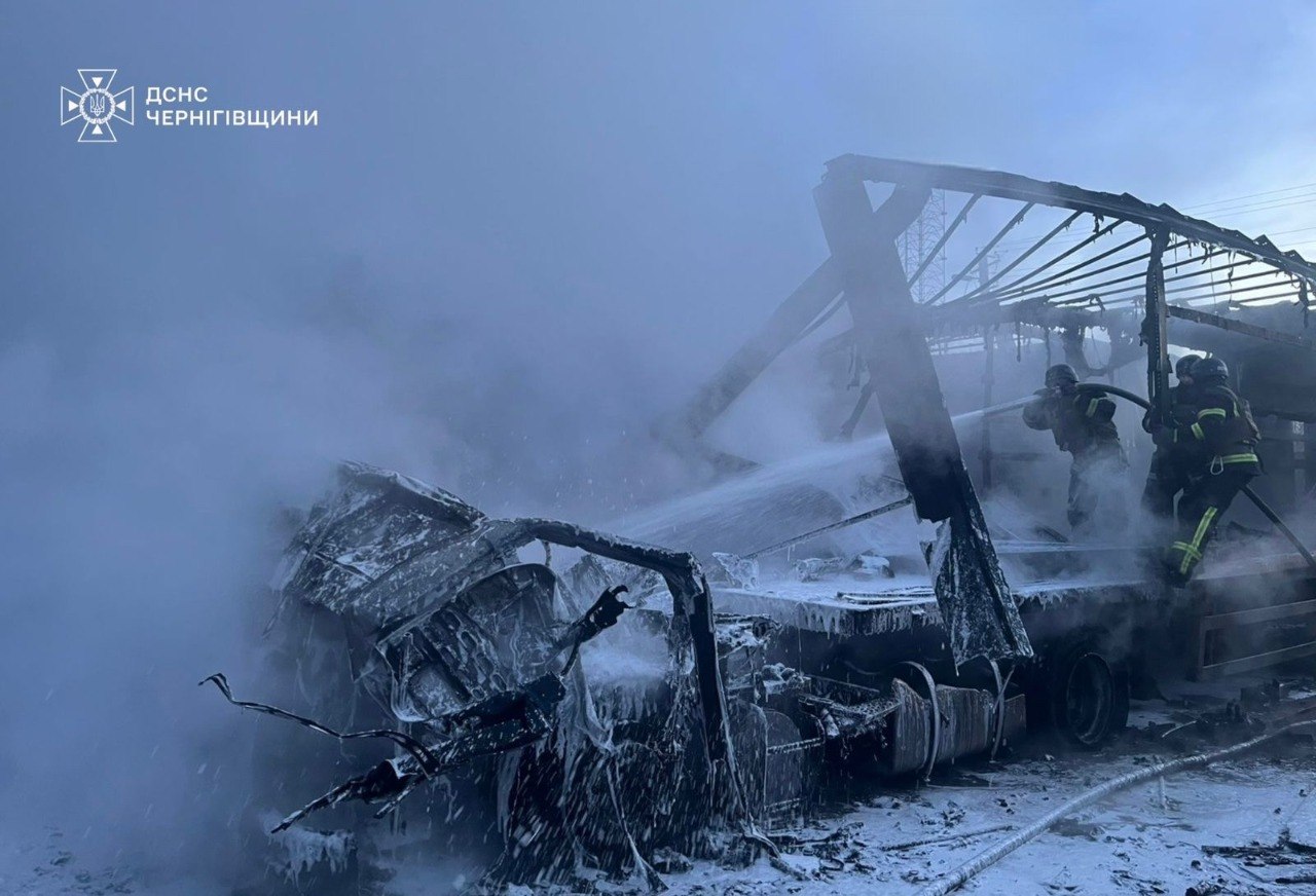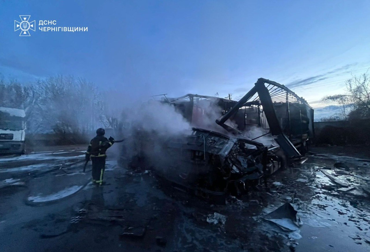 На Чернігівщині російський дрон атакував автостоянку: згоріли вантажівки