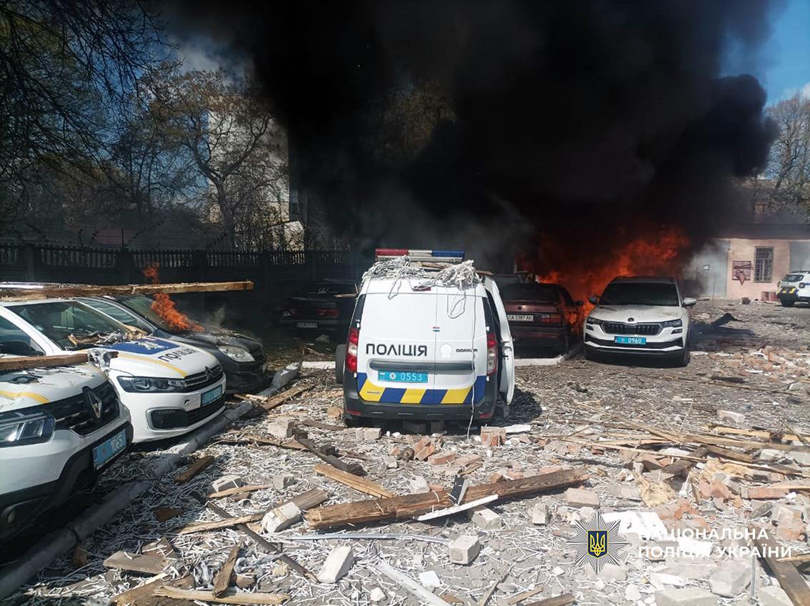 Внаслідок атаки виникла пожежа на території райвідділу поліції. Пошкоджена цивільна інфраструктура та автівки.