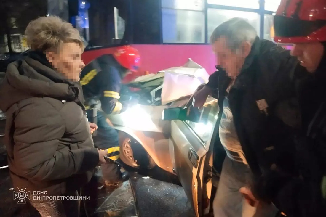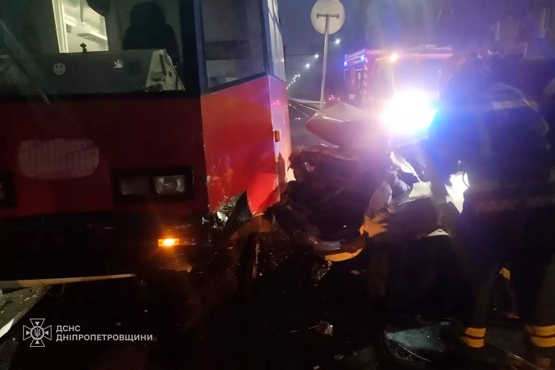 На Дніпропетровщині легковик зіткнувся із трамваєм: водія з авто витягували рятувальники