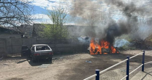 Внаслідок ворожих ударів у місті виникла пожежа. Пошкоджені магазин, кафе, приватні будинки, господарські споруди, авто й автобусна зупинка.