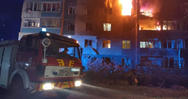 Також атаки зазнав Дніпровський район. Поранений чоловік, він лікуватиметься амбулаторно. Сталися кілька займань. Пошкоджені підприємства, зруйнована будівля, що не експлуатувалася.
