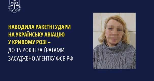 У Кривому Розі до 15 років позбавлення волі засуджено жінку, яка діяла як агентка ФСБ РФ і допомагала в наведенні ракетних ударів по українській авіації. Вирок винесено за публічного обвинувачення Донецької обласної прокуратури за статтею державної зради (ч. 2 ст. 111 КК України) з конфіскацією майна.
