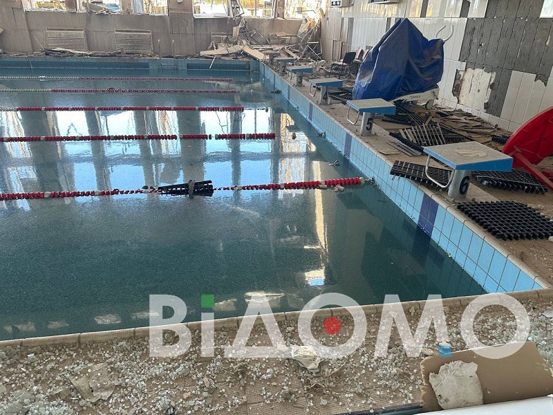 У результаті вибухової хвилі постраждав місцевий спорткомплекс - пошкоджено фасад будівлі, вибито вікна і знищено частину зовнішнього оздоблення. Внутрішні приміщення, зокрема спортивна зала і басейн, теж отримали значні пошкодження. Усередині басейну досі плавають уламки конструкцій, які перетворилися на будівельне сміття, що ускладнює подальше прибирання та відновлення.