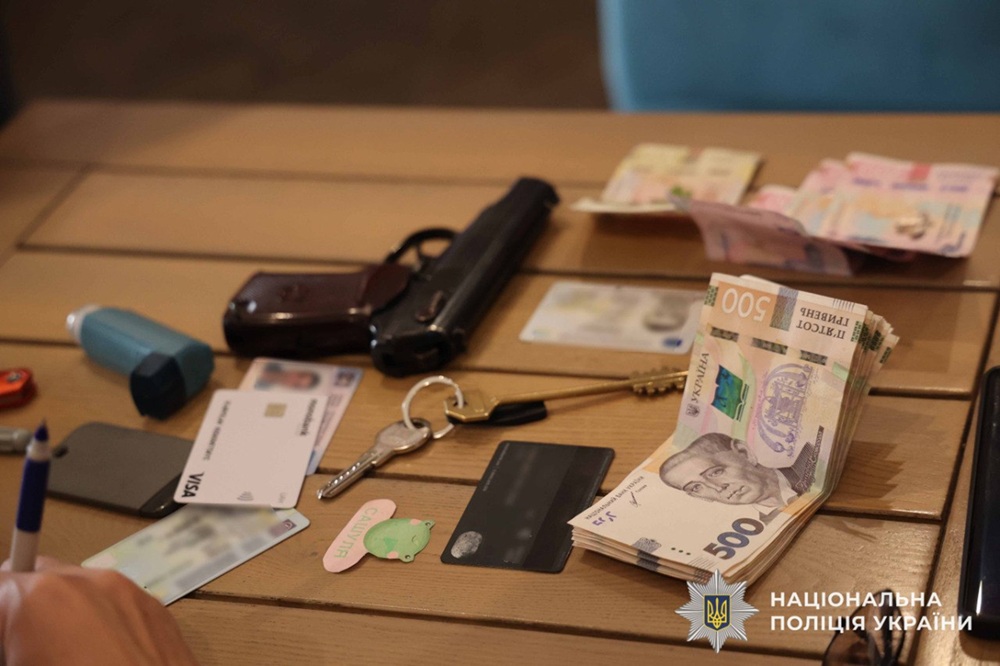 Правоохоронці затримали чоловіка під час зустрічі з потенційними "клієнтами" у закладі громадського харчування. Одразу після цього в його помешканні та автомобілі провели обшуки. Поліцейські виявили мобільні телефони, ноутбук, чорнові записи та документи з ознаками підробки. Також вилучили готівку, пістолет і набої до нього.