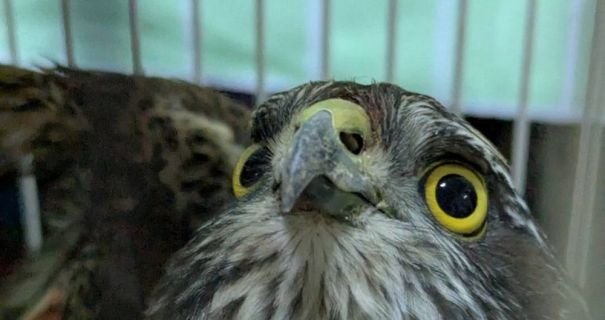 Птаха назвали ППО, оскільки він врятував людей від російського дрона ціною власного здоров'я. Тепер допомога потрібна і йому: волонтери оголосили збір коштів на харчування для яструба-захисника.