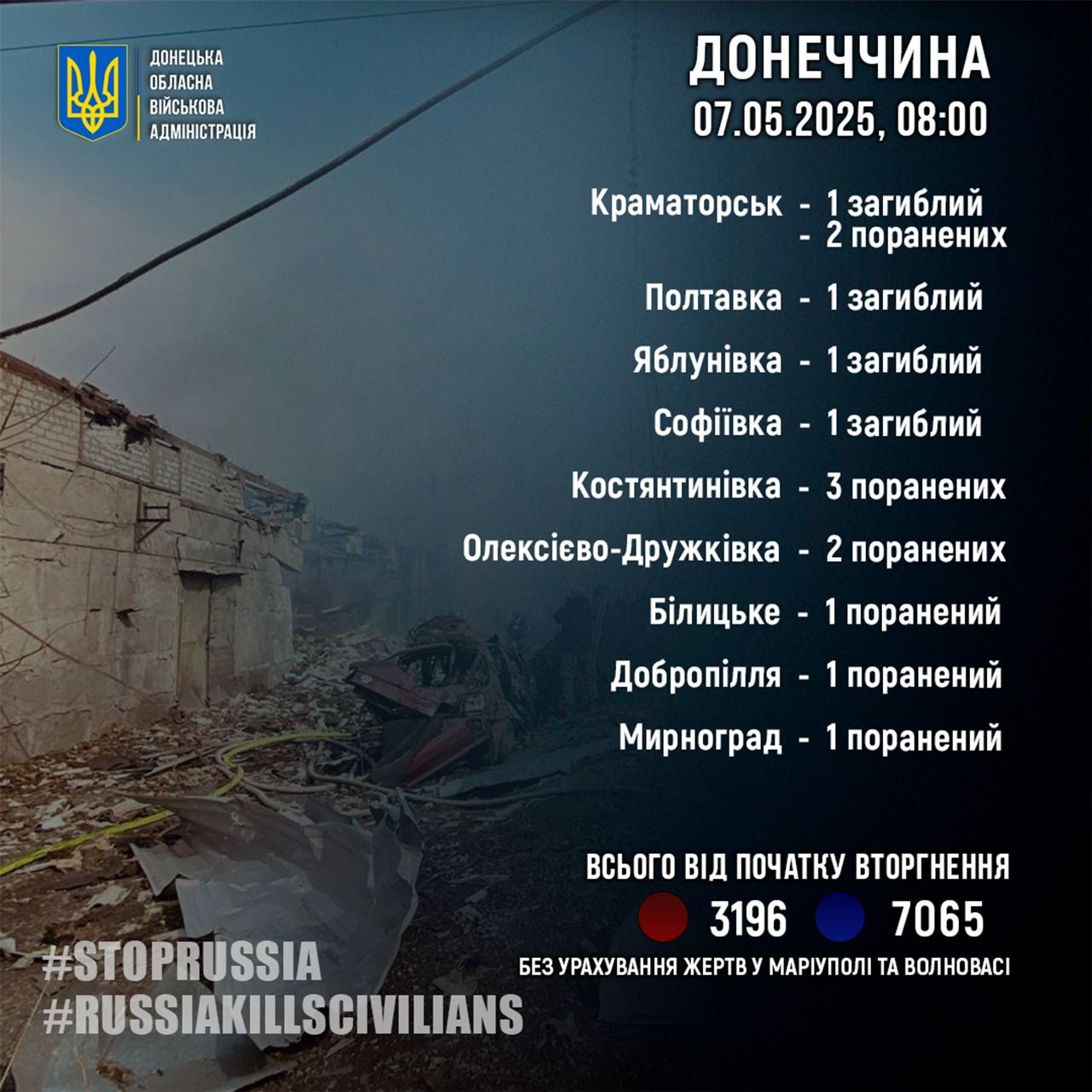 Російська армія минулої доби, 6 травня, вбила чотирьох жителів Донецької області, ще 10 людей зазнали поранень