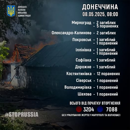Окупанти минулої доби, 7 травня, вбили 8 жителів Донецької області, ще 23 людини отримали поранення