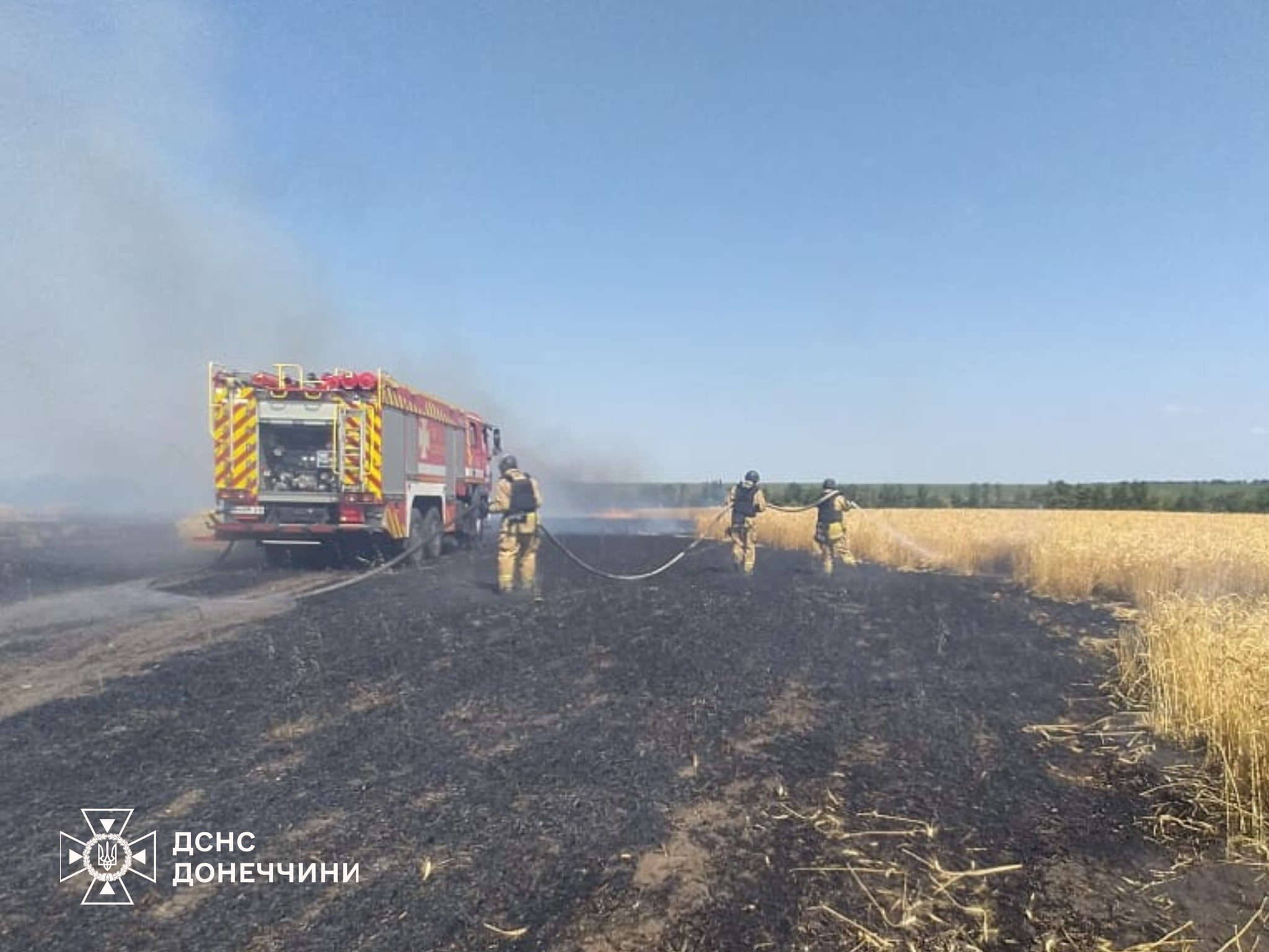 "В умовах небезпеки, ризикуючи власним життям аграрії та рятувальники - працівники Головного управління Державної служби України з надзвичайних ситуацій Донецької області докладають максимум зусиль для збереження хліба від пожеж", — йдеться у повідомленні адміністрації.