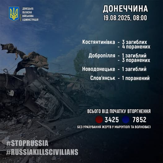 Росіяни вбили трьох людей у Костянтинівці, а також одну людину в Добропіллі та одну людину – у Новодонецькому.