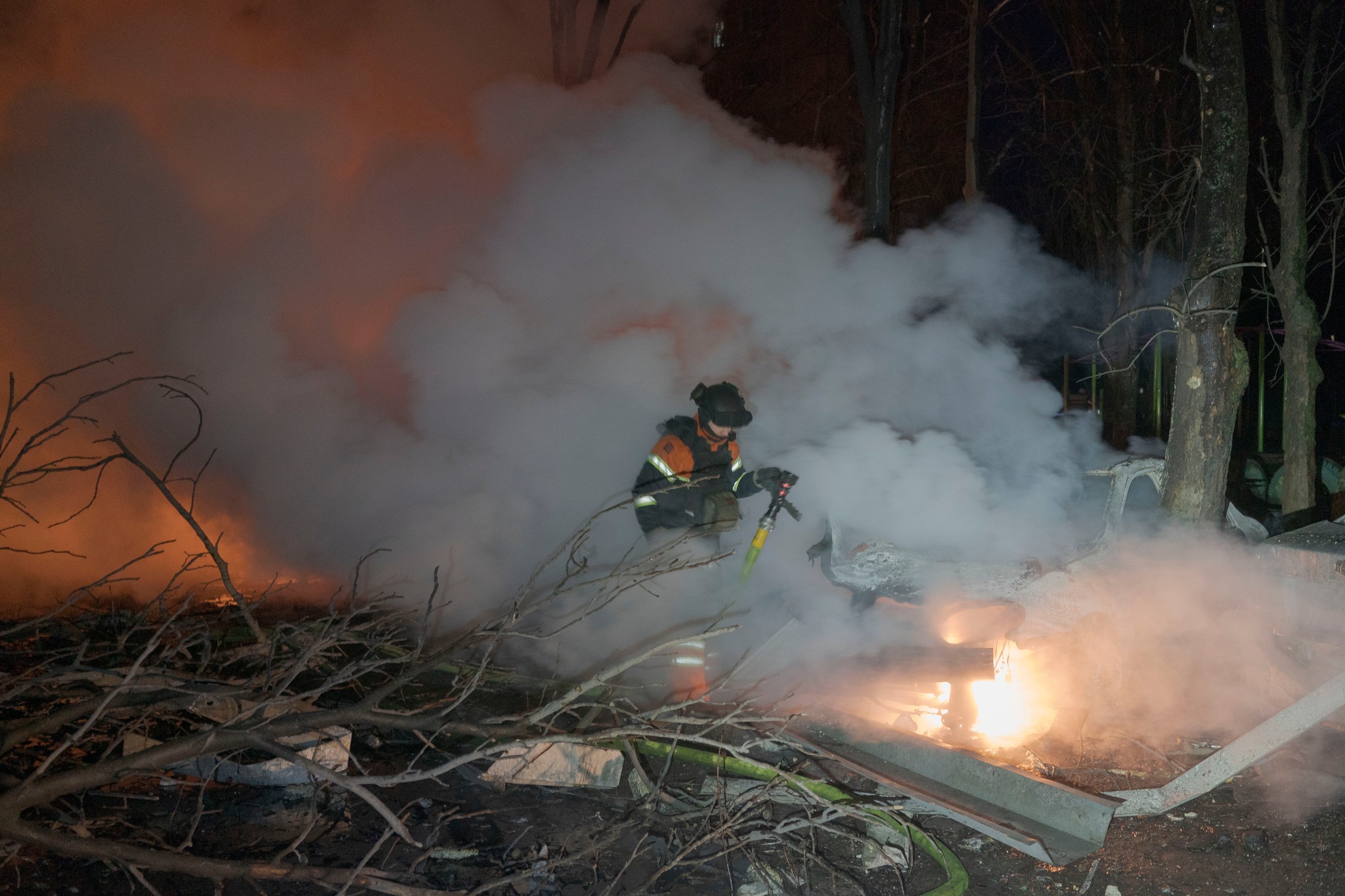 На місці влучання пошкоджено 11 багатоквартирних будинків та автомобілі. Надзвичайники ліквідували пожежі на площі 250 кв. м та допомагали мешканцям вибратися з пастки, відчиняючи деформовані вибухом вхідні двері.