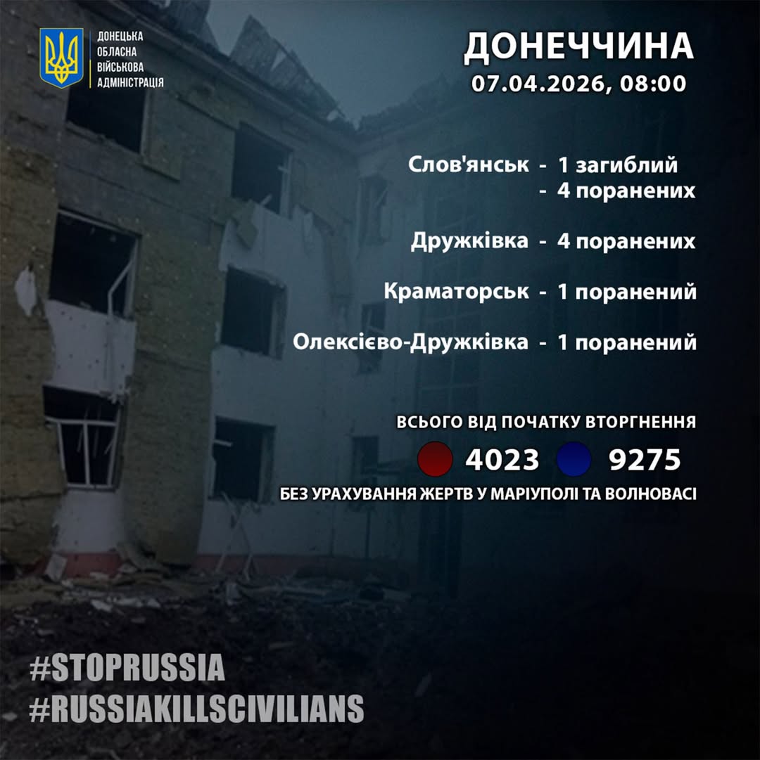 Крім того, четверо поранених – у Дружківці. По одній людини отримали поранення у Краматорську та Олексієво-Дружківці.