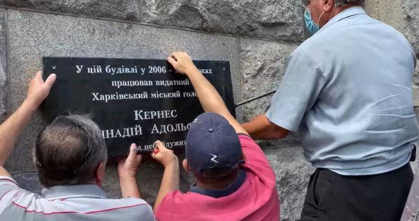 Про це на своїй сторінці у "Фейсбуці" повідомив депутат Харківської міськради від ОПЗЖ Анатолій Родзинський, який був одним з ініціаторів встановлення дошки.