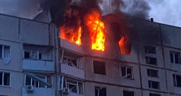 Вранці 14 квітня російські загарбники атакували дроном цивільне підприємство в Салтівському районі Харкова. На місці влучання виникла пожежа