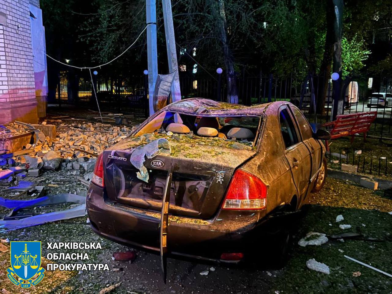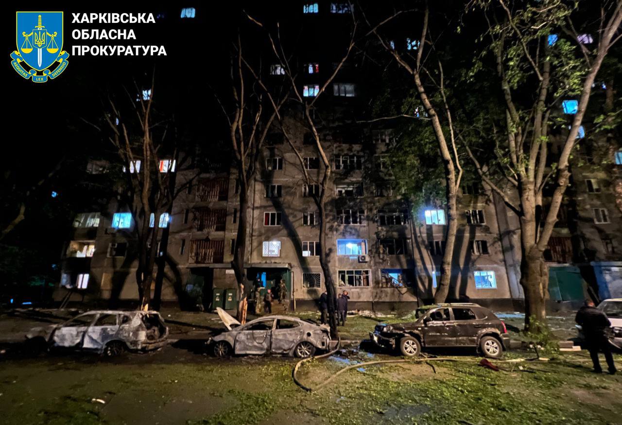 - Один із безпілотників влучив у багатоповерховий житловий будинок у Слобідському районі Харкова. Будівля зазнала значних пошкоджень. Вибуховою хвилею пошкоджено понад 30 автомобілів. Крім того, в результаті інших ударів у цьому районі пошкоджено кондитерський цех, багатоквартирні будинки, автосалон, ресторани, кафе та магазини.