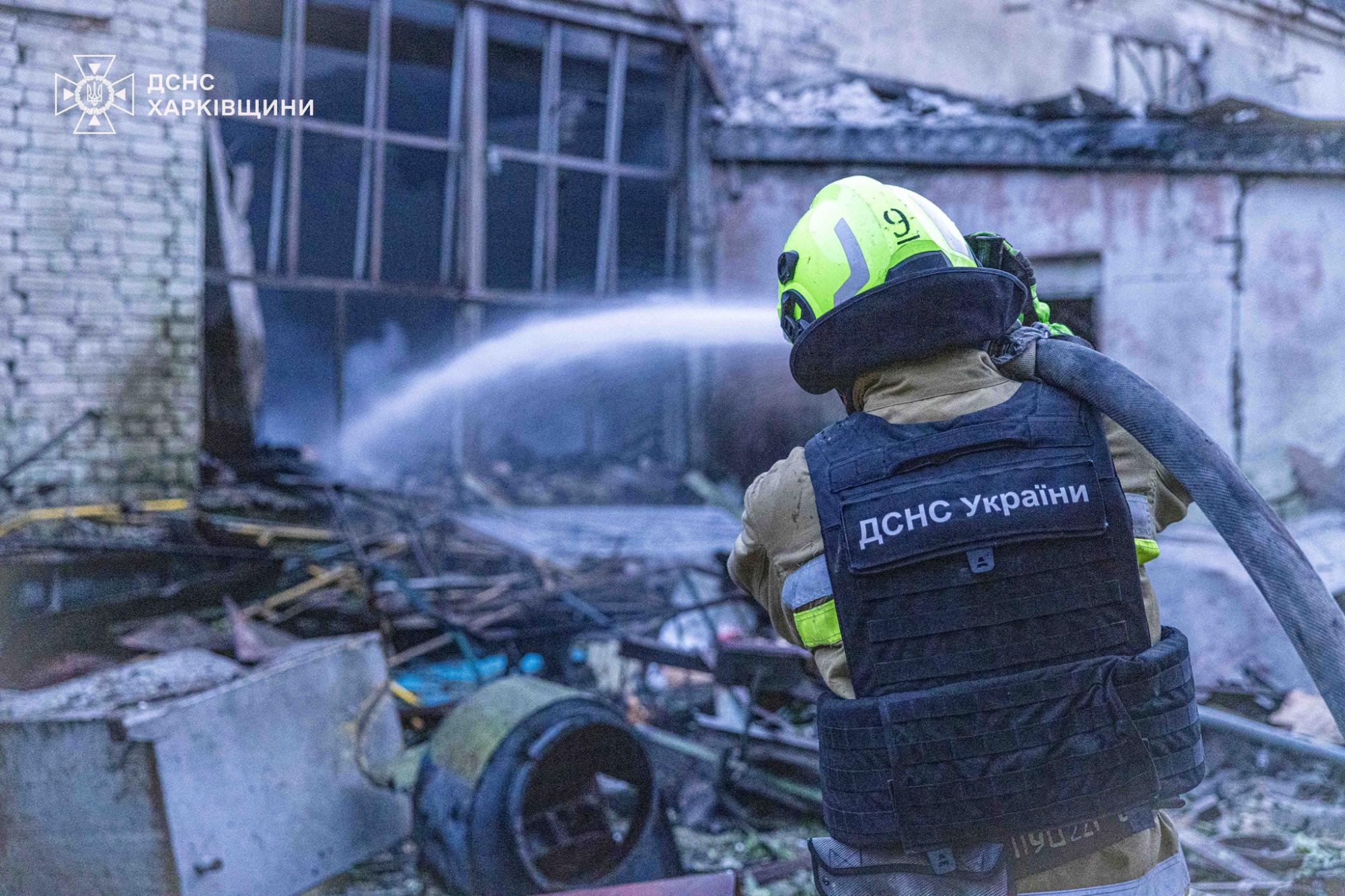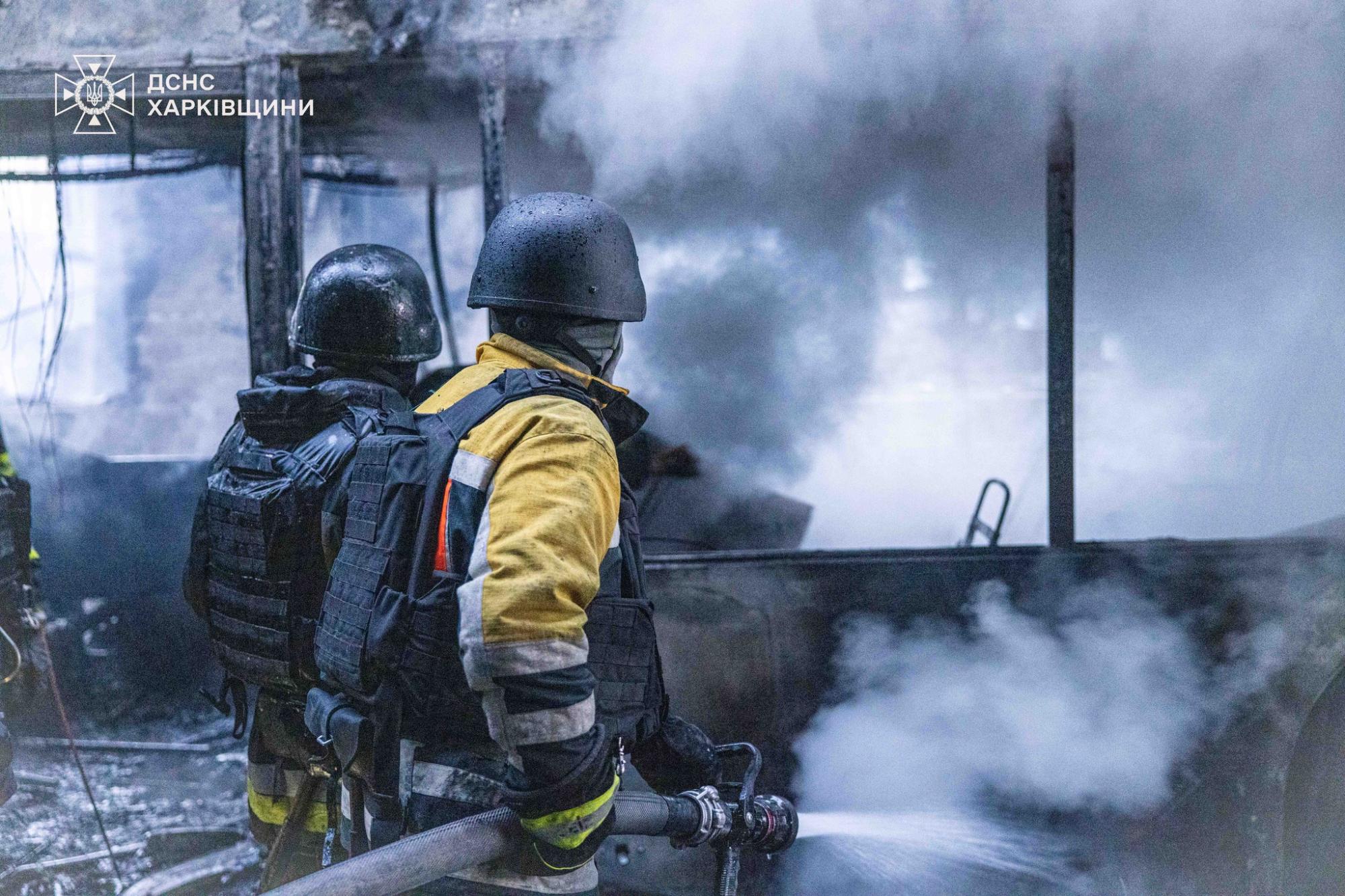 У ДСНС показали, як гасили пожежу після ударів дронів по Харкову