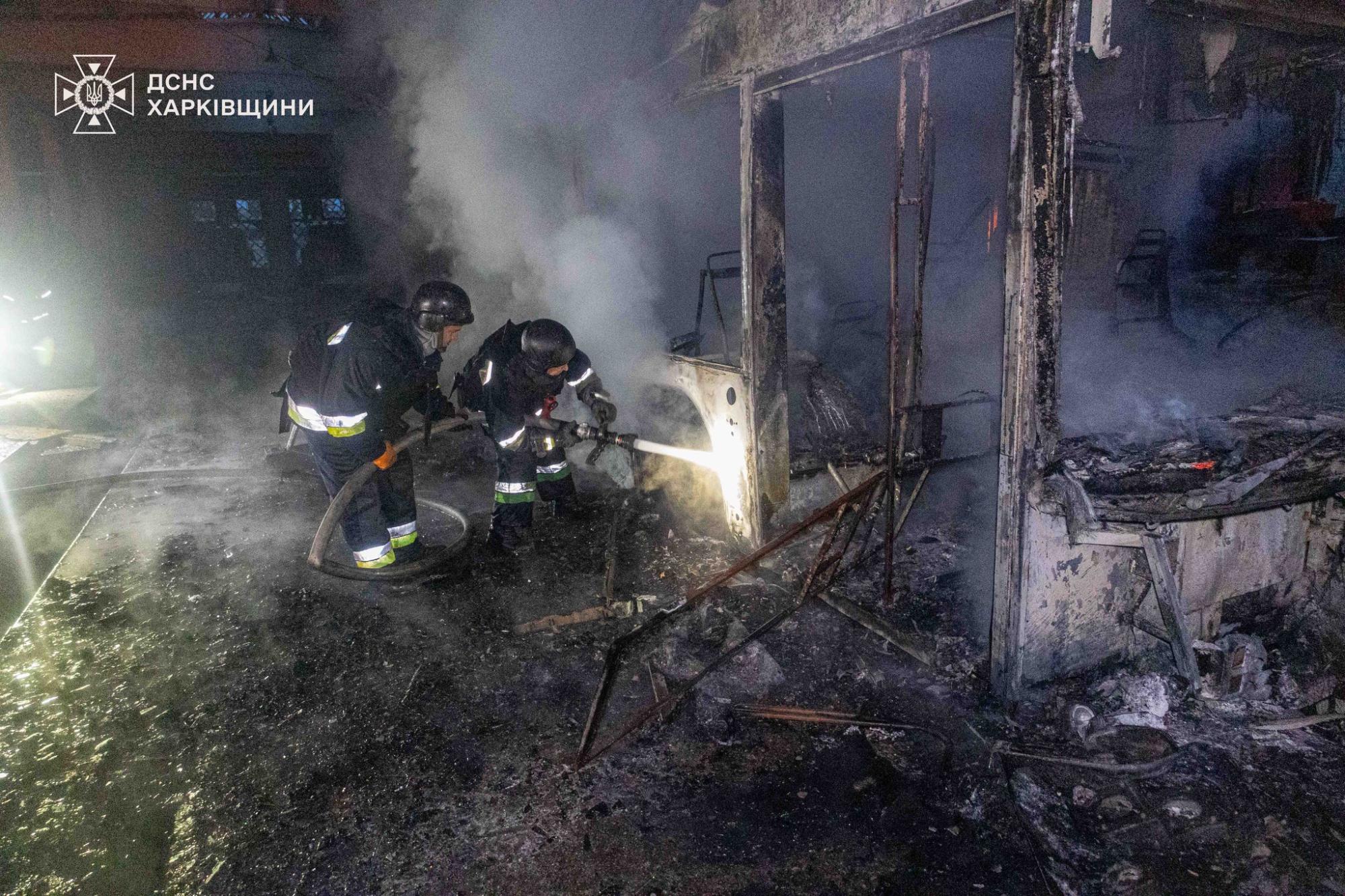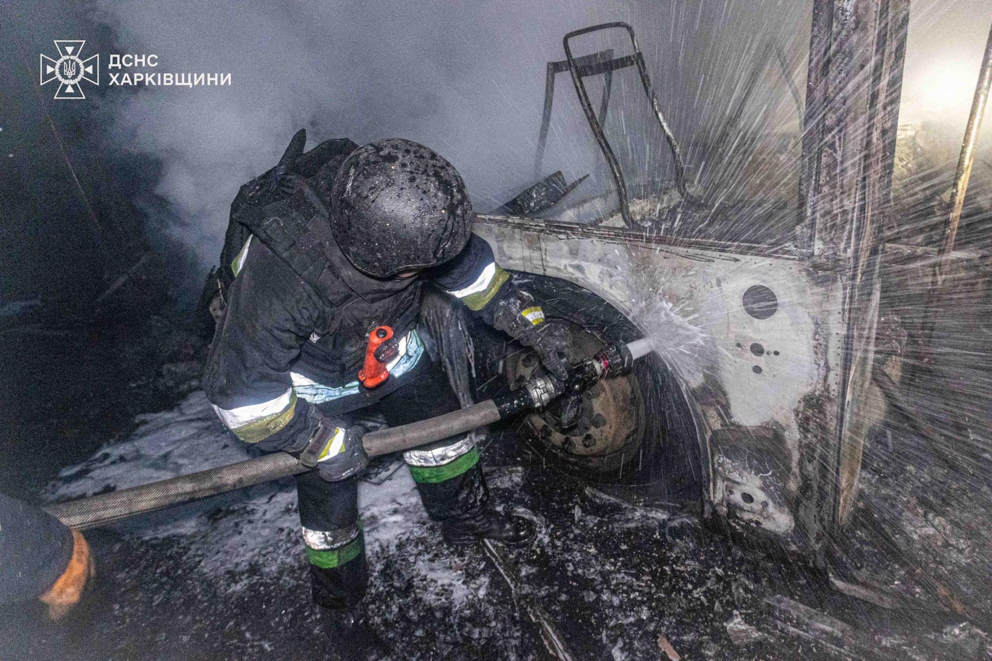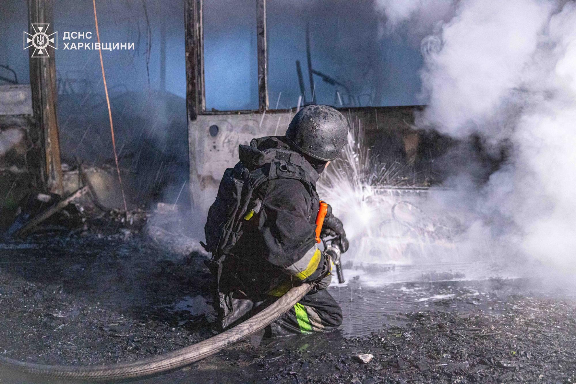 Рятувальники загасили пожежу, яка сталася через ворожу атаку дронів по тролейбусному депо у Слобідському районі Харкова