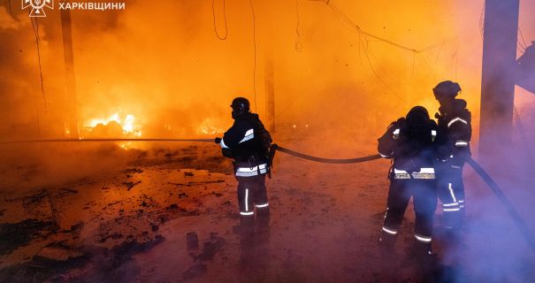 Росіяни атакували безпілотниками поштовий термінал біля Харкова, сталась масштабна пожежа