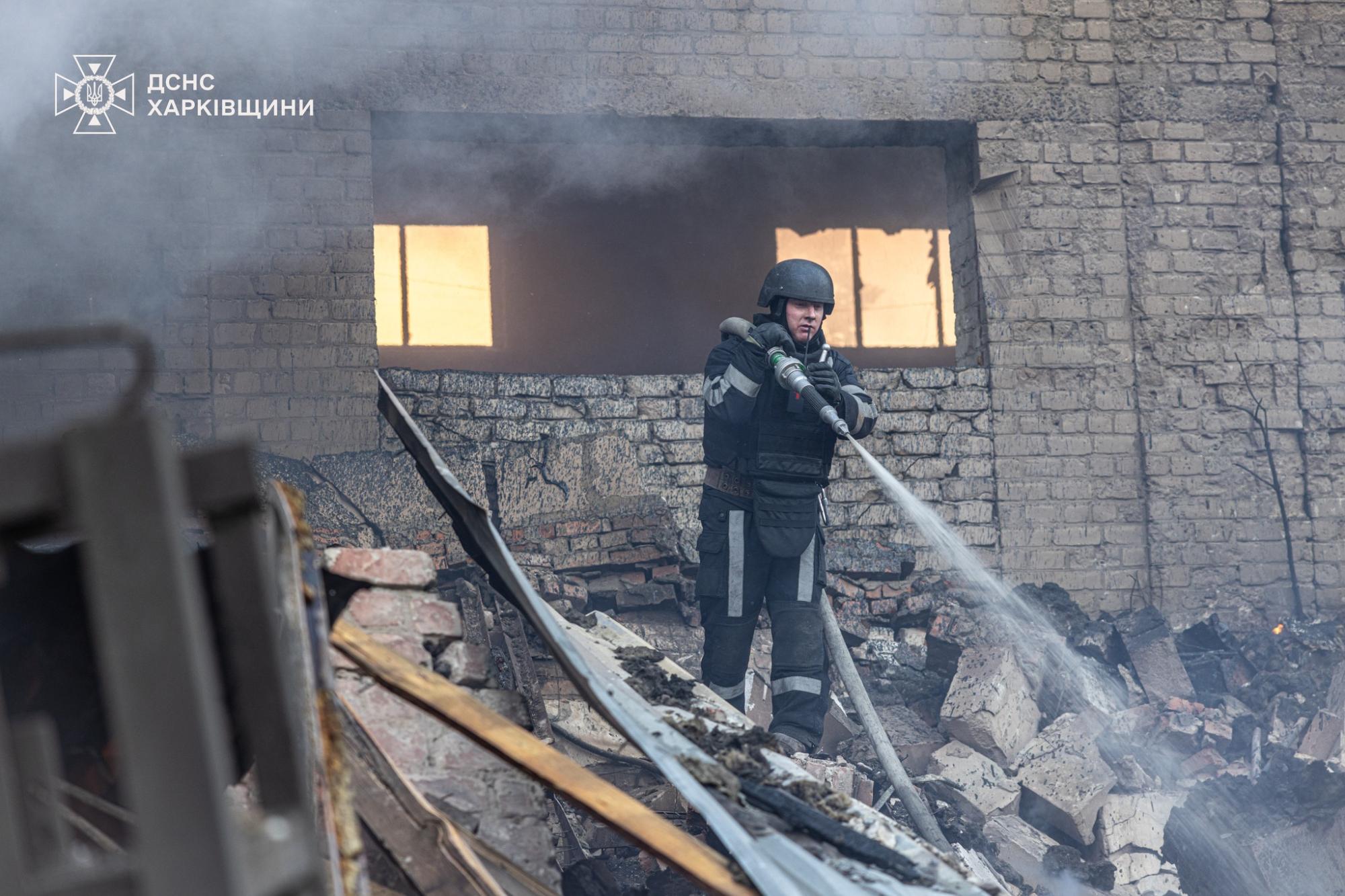 Рятувальники ліквідовують масштабні пожежі після нічної атаки на Харків